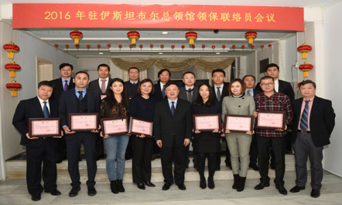2016年12月16日,驻伊斯坦布尔总领馆召开领保联络员机制首次会议,郁红阳大使到会祝贺,钱波总领事出席并讲话。会议由钟洪糯副总领事主持,陈苏副总领事、总领馆各部门负责人、领保联络员、社团代表等40余人出席。