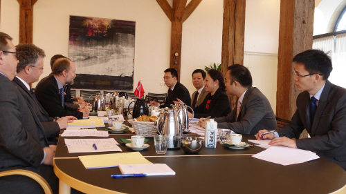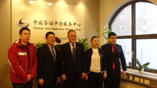 9日,陆旭副司长一行在驻丹大使刘碧伟陪同下考察哥本哈根中国签证代办中心,听取中心工作情况介绍,对证件接案工作疑难问题进行现场指导。