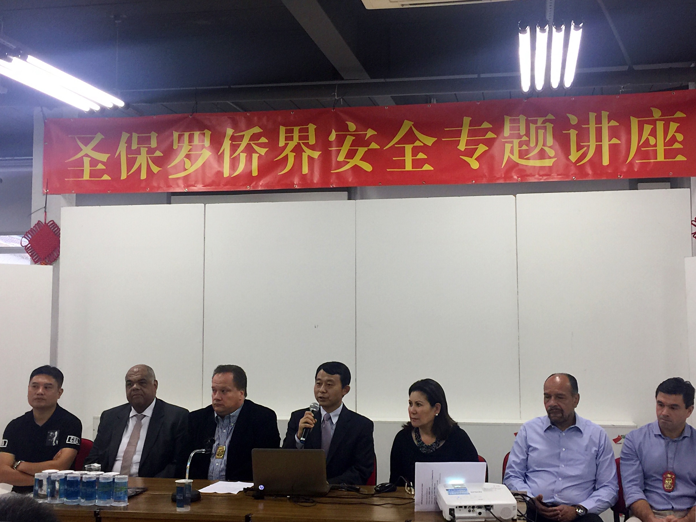傅长华副总领事在致辞中表示,长期以来,旅巴侨胞为巴西经济社会和多元文化的发展做出了巨大的贡献,他们的安全和合法权益应该得到保障。中国使领馆一贯倡导旅巴侨胞遵纪守法,合法经营,融入巴西社会,为中巴两国的友谊和合作做积极贡献,一贯积极维护中国公民的安全利益和合法权益,为此做了不懈努力。去年11月,宋扬总领事到任不久便拜会圣保罗州安全厅长马吉诺,表示总领馆将继续保持与圣州公安厅和警方的合作,维护圣保罗侨界治安安全。马吉诺厅长表示,他们非常关注有关涉华恶性案件,已掌握一些犯罪线索,将加大工作力度,全力调查、打击相关犯罪行为,为在圣中国侨民、中资企业员工及中国游客创造更好的治安环境,提供更有效率的公共安全服务。今年3月8日,圣保罗警方成功捣毁了一个涉华犯罪团伙,广大侨胞深受鼓舞,认为这是期盼多年的大好事,纷纷赞扬圣州警方的行动。总领馆希望通过举办此次讲座,传播安全防范知识,促进侨社与警方之间的了解和互信,进一步改善华社治安状况。