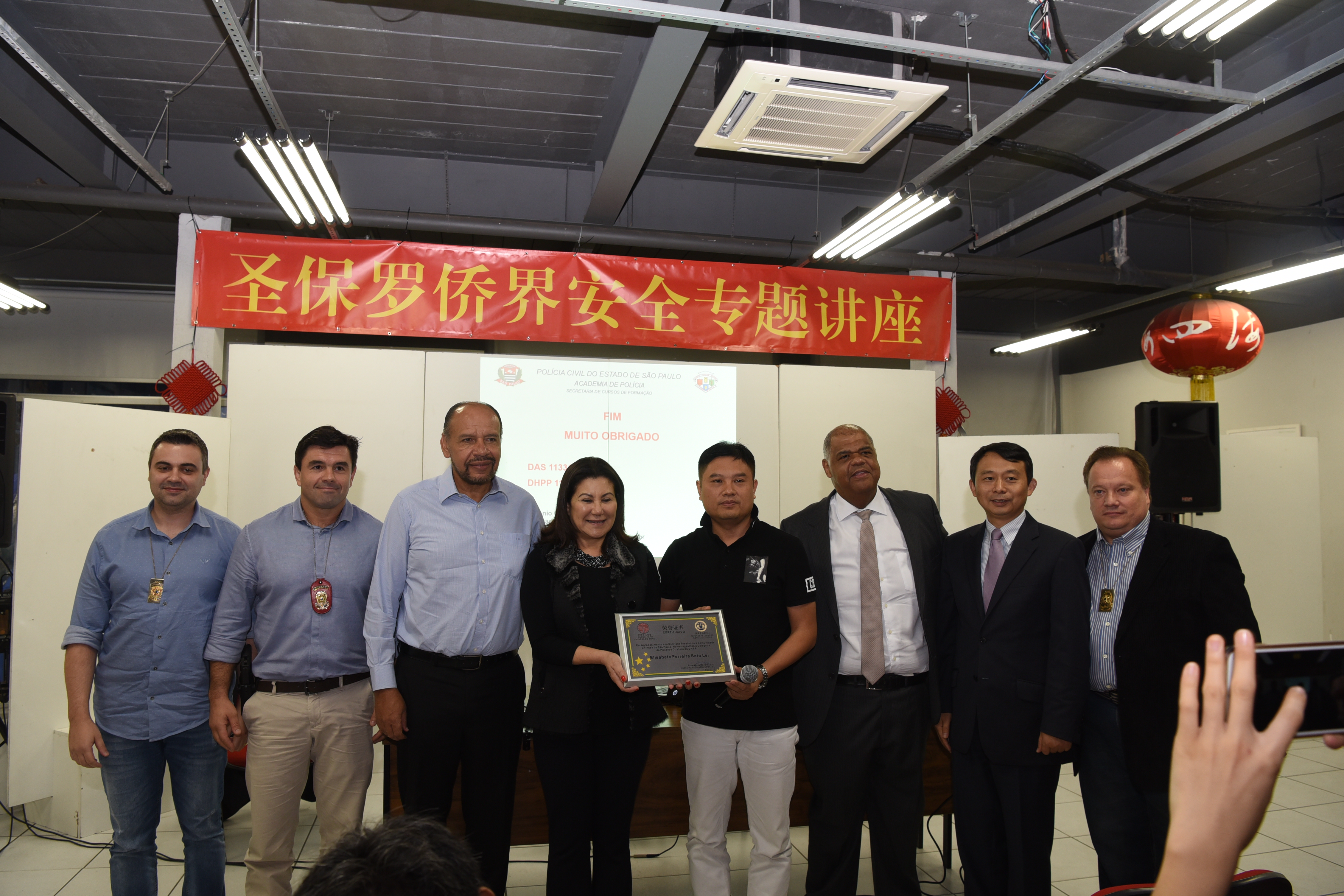巴西华协张立群秘书长代表圣保罗侨界对警方和总领馆的关心表示感谢,他说,讲座不仅增进了侨胞的安防知识,更拉近了警民距离,侨胞们对进一步改善治安状况更有信心。张秘书长还向佐藤局长赠送了感谢牌匾。