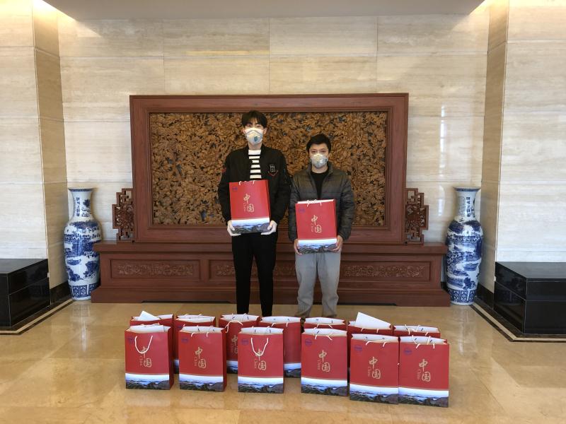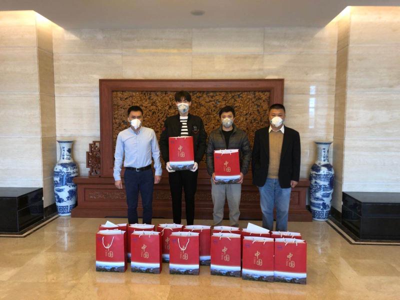 3月25日,中国驻伊朗大使馆王清军参赞和文化处负责人会见德黑兰大学留学生代表,并向留学生们发放了装有口罩、药品等防护用品的“健康包”。